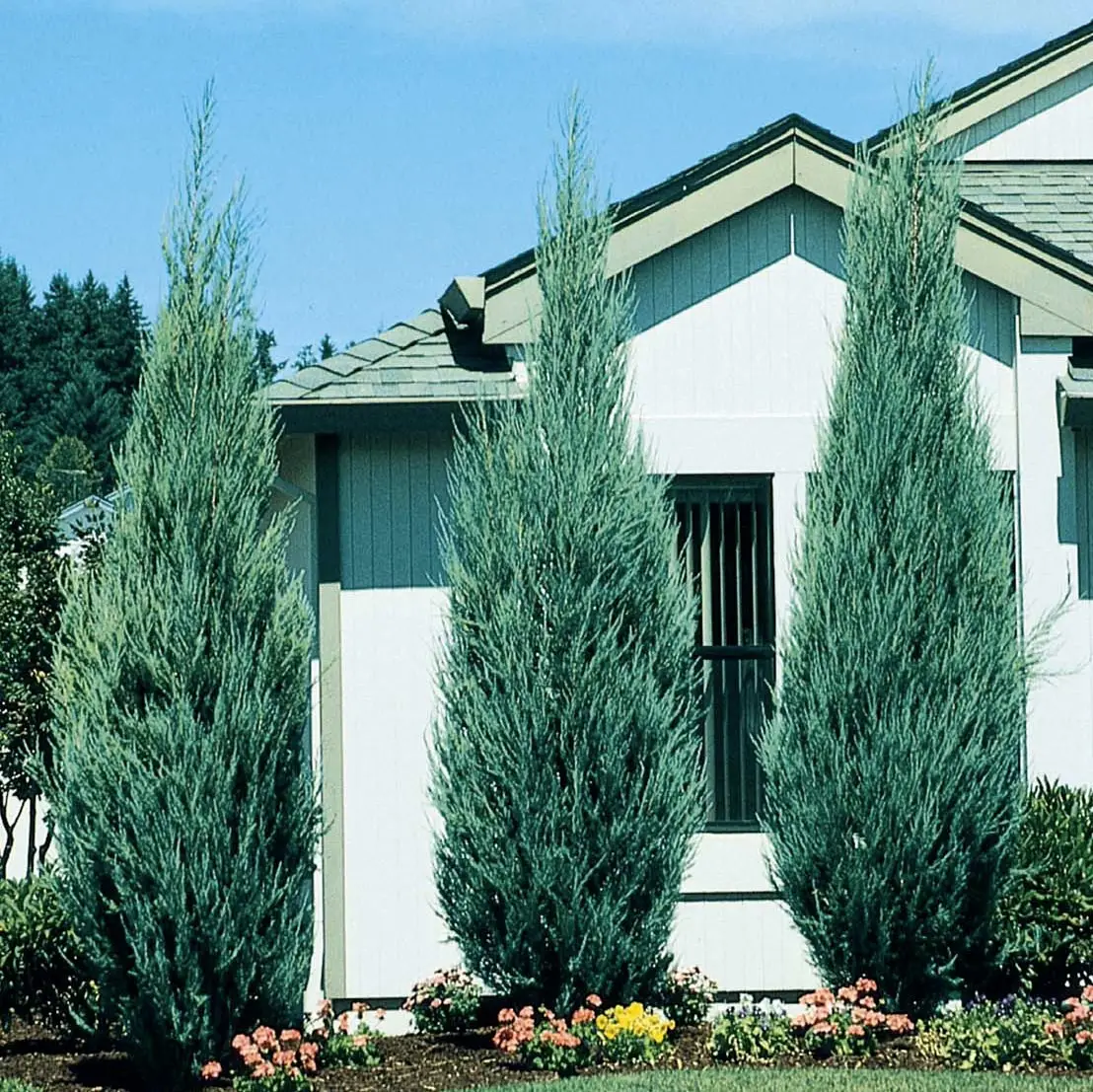 Можжевельник скальный Блю Арроу - высокий хвойный кустарник с очень узкой, колоновидной кроной. Жесткие, вертикально растущие, плотно прижатые к стволу побеги, прирастают примерно 15 см в год. В 10-летнем возрасте растение достигает 2-2,5 м в высоту и 0,5-0,7 м в диаметре