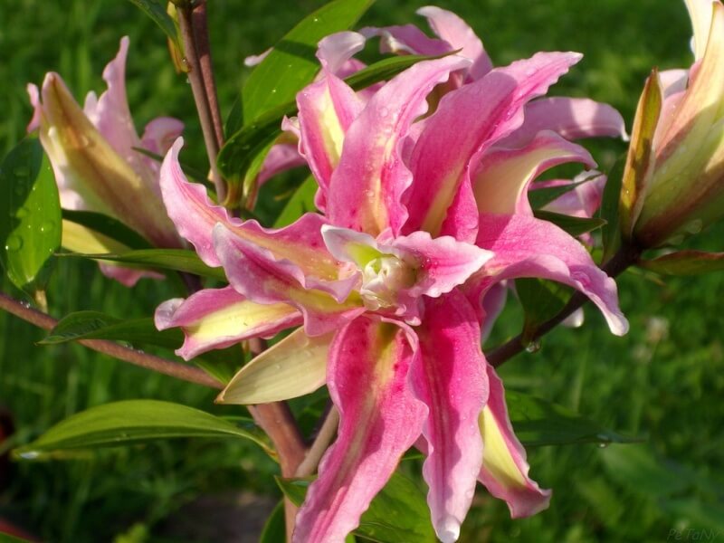 Лилия Distant Drum великолепно смотрится в сочетании с другими растениями разных окрасок благодаря ее яркому цвету и пышным цветам, которые невозможно затмить, это розовое облако всегда будет в центре вашего внимания. Крупные махровые цветы диаметром до 18 см будут распускаться в вашем саду из плотных бутонов лилии, расположенных на макушке растения высотой до 100 см. Стебель лилии по всей высоте покрыт темно-зеленой глянцевой листвой, выгодно подчеркивающей яркость лепестков. Насыщенно-розовые лепестки этого сорта лилий могут иметь редкий крап.