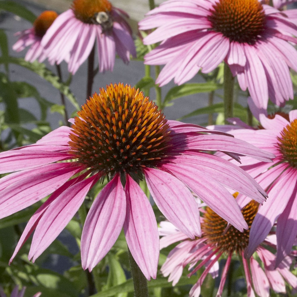 Эхинацея пурпурная Мэгнус придется по душе тем, кто любит яркие краски в своем саду. Сорт характеризуют невероятно крупные, до 12 сантиметров в диаметре, цветки с насыщенно-розовыми лепестками, которые чуть темнее ближе к центру. Сам центр цветка, как и у большинства эхинацей, выступающий над лепестками, шаровидный, ржаво-оранжевого цвета. В высоту куст достигает 90 сантиметров и ему найдется место в любом саду. В период цветения ― с июля по сентябрь ― когда он особенно декоративен, цветы будут собирать рядом с собой множество бабочек. Эхинацея пурпурная Мэгнус нетребовательна к составу почвы, однако предпочитает посадку на освещенном месте.