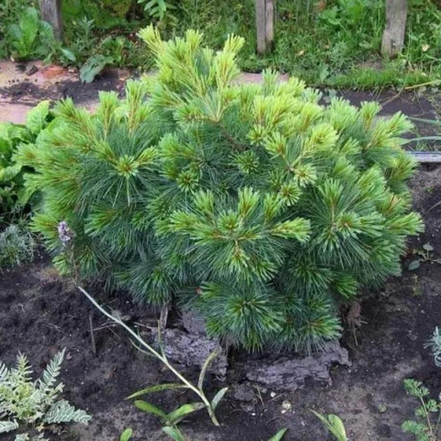 Сосна Веймутова Radiata - это хвойный вечнозеленый компактный кустарник с широко-колоновидной или округлой кроной. Длинная (8-10см) голубовато-зеленая мягкая хвоя собрана в пучки по пять штук. Светло-коричневые узкие цилиндрические шишки являются дополнением к высокодекоративному облику. Эта сосна предпочитает солнечное местоположение, морозоустойчива.
