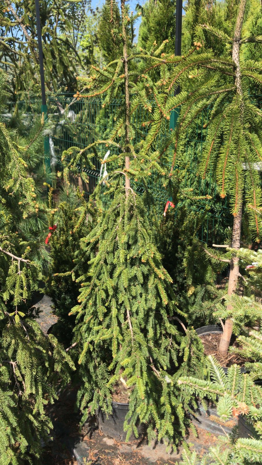В высоту деревце достигает 8 м, крона узкая, развивается неравномерно, обычно ее диаметр не превышает 3 м. Ежегодно ель увеличивается на 10 см в высоту и 5 см в ширину. Главная особенность крупномера обыкновенная Inversa – ниспадающие, обвисшие ветки и заваливающаяся верхушка. Хвоя блестящая, толстая, темно-зеленого оттенка. Саженцы хорошо переносят сильные морозы, не терпят засухи, но и к переувлажнению относятся негативно. Ель светолюбива, но приживается и в полутени.