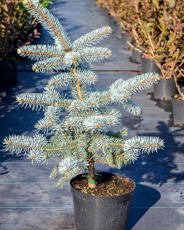 Колючая ель Глаука (‘Glauca’) - Это дерево отличается большими размерами, крона его густая, имеет форму широкого конуса с диаметром до 6–8 м и острой верхушкой. Каждый год растение прибавляет по 30 см в высоту и 15 см в ширину. Во взрослом возрасте высота этого сорта голубой ели может достигать 25 м, а диаметр ствола — 1,2 м. В природных условиях дерево живет до 400 лет.